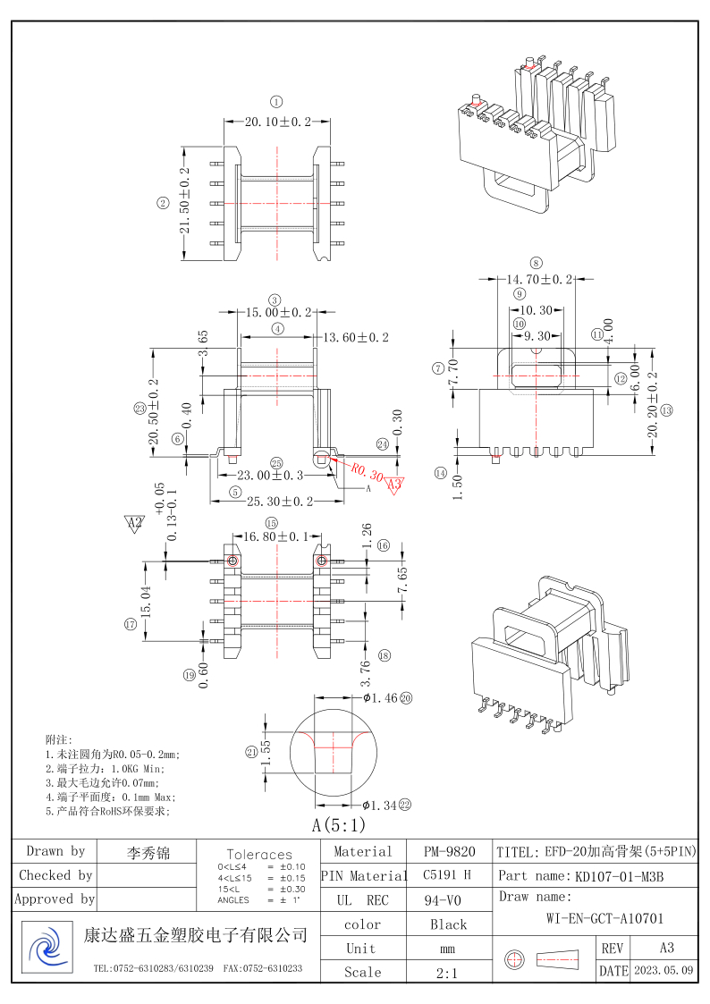 EFD-20加高骨架(5+5PIN)